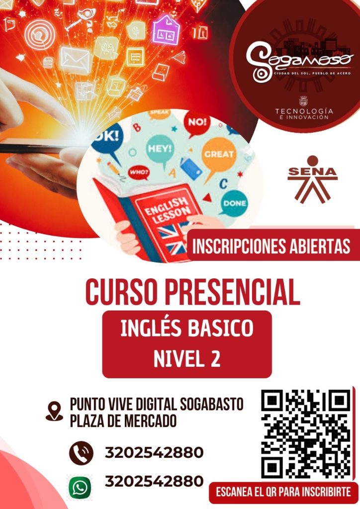 CURSO PRESENCIAL INGLES BASICO 2 / Cursos, Eventos / Por Ideatusogamoso Modalidad: PresencialLugar: Punto Vive SogabastosInscripción: https://docs.google.com/forms/d/e/1FAIpQLScbd41cgv9O1kxYdz02Q10AsFeAYwZqFmB-lRDmCdqx5whywg/viewform